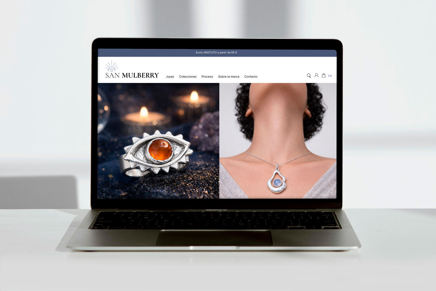 Diseño conceptual de ecommerce de joyería artesanal con enfoque en identidad simbólica, dirección visual y sistema UI escalable.