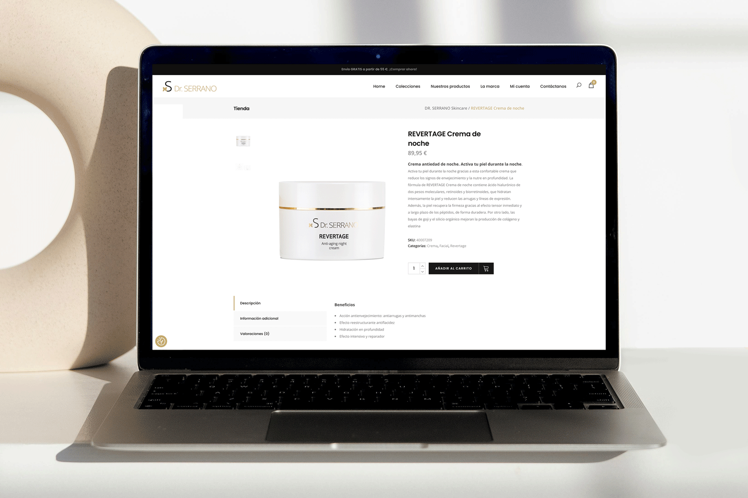 El proyecto nació de la necesidad de crear una web y ecommerce independientes para una línea de dermocosmética antiedad de alta gama, con identidad y posicionamiento propios.
